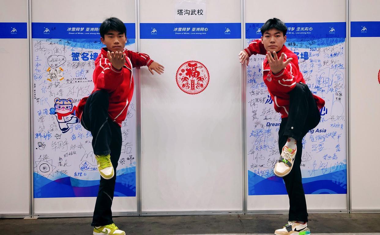 冰雪项目对大腿力量和核心力量要求非常高,加上技术动作与武术动作有很大区别,这让演员们刚开始就遭遇难题,很多人做完一遍动作就出现了腹股沟抽筋的状况。对此,导演组特别邀请专业的冰雪项目教练为学员们提供指导,帮助他们尽快掌握动作要领,学校教练也在平时训练中加入了更多强化肌肉力量的内容,并及时牵拉放松。“从开始到技术动作达到导演组的要求,整整用了一个半月的时间”夏朝阳说,“那段时间我们几乎每天都是三次训练,一方面要保持强度,一方面还要防止受伤。孩子们的态度和纪律性最终换来了丰厚回报,前期排练和裁判中,他们的表现都得到了导演高度评价。”